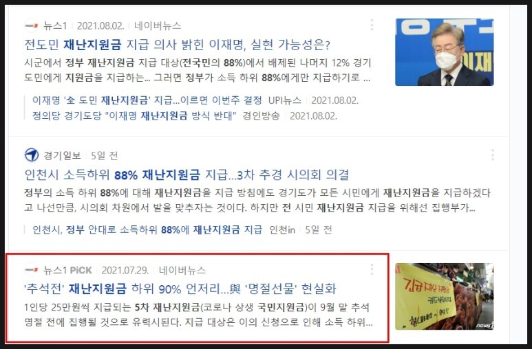 반대로 경기도의 경우 88%에 제외된 12%에게도 경기도 지자체에서 사실상 5차 재난지원금 전국민(경기도민)에게만 전부 지원금을 준다고 했습니다.