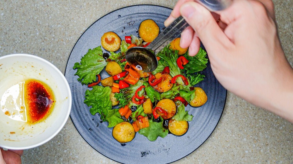 이 드레싱은 고구마 샐러드 외에도 다른 종류의 샐러드에 잘 어울리니 메모해 두시면 다용도로 활용할 수 있습니다.
