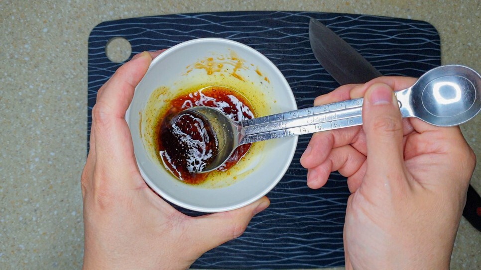 포스팅 상단 적어드린 드레싱 재료를 한 그릇에 전부 넣고 잘 섞어주세요.