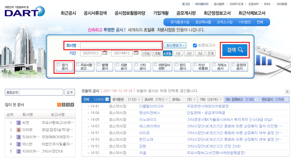 정부는 각 기업들이 올리는 보고서를 다트(DART)라는 기업정보 공시사이트를 통해 전국민에게 공개해놓습니다.