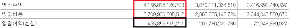| 총 영업수익(매출액) | 4,156,816,120,723원 |